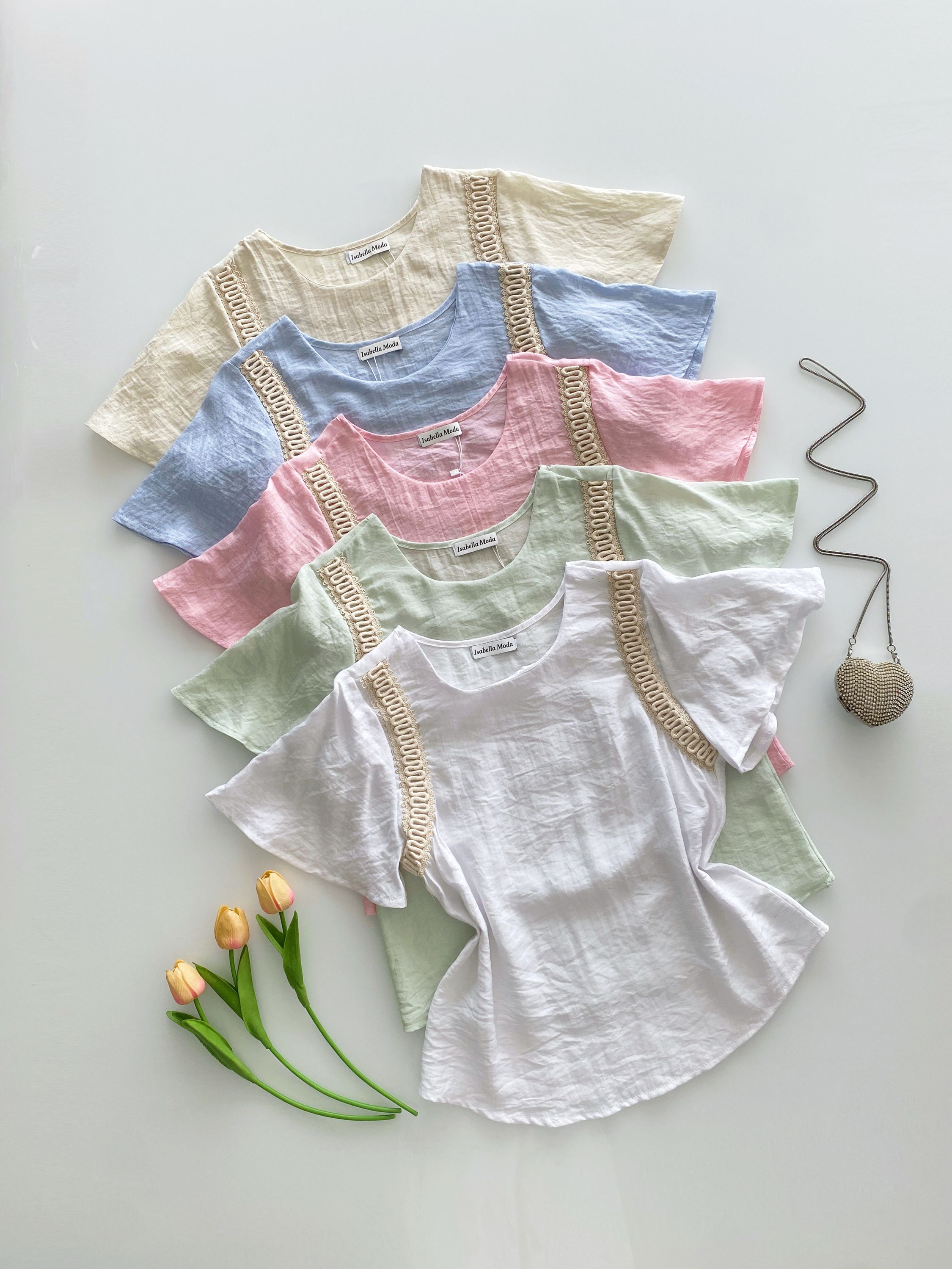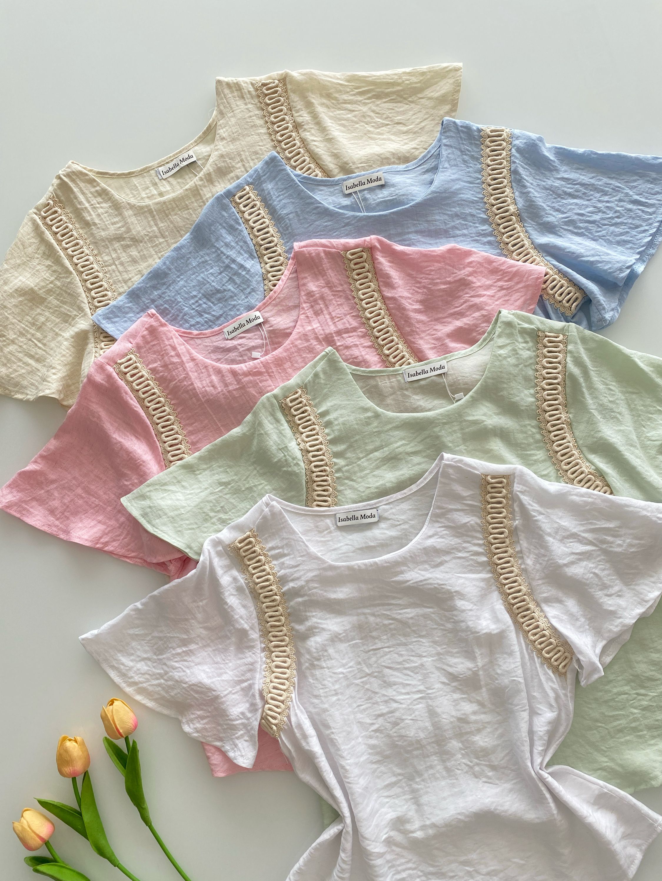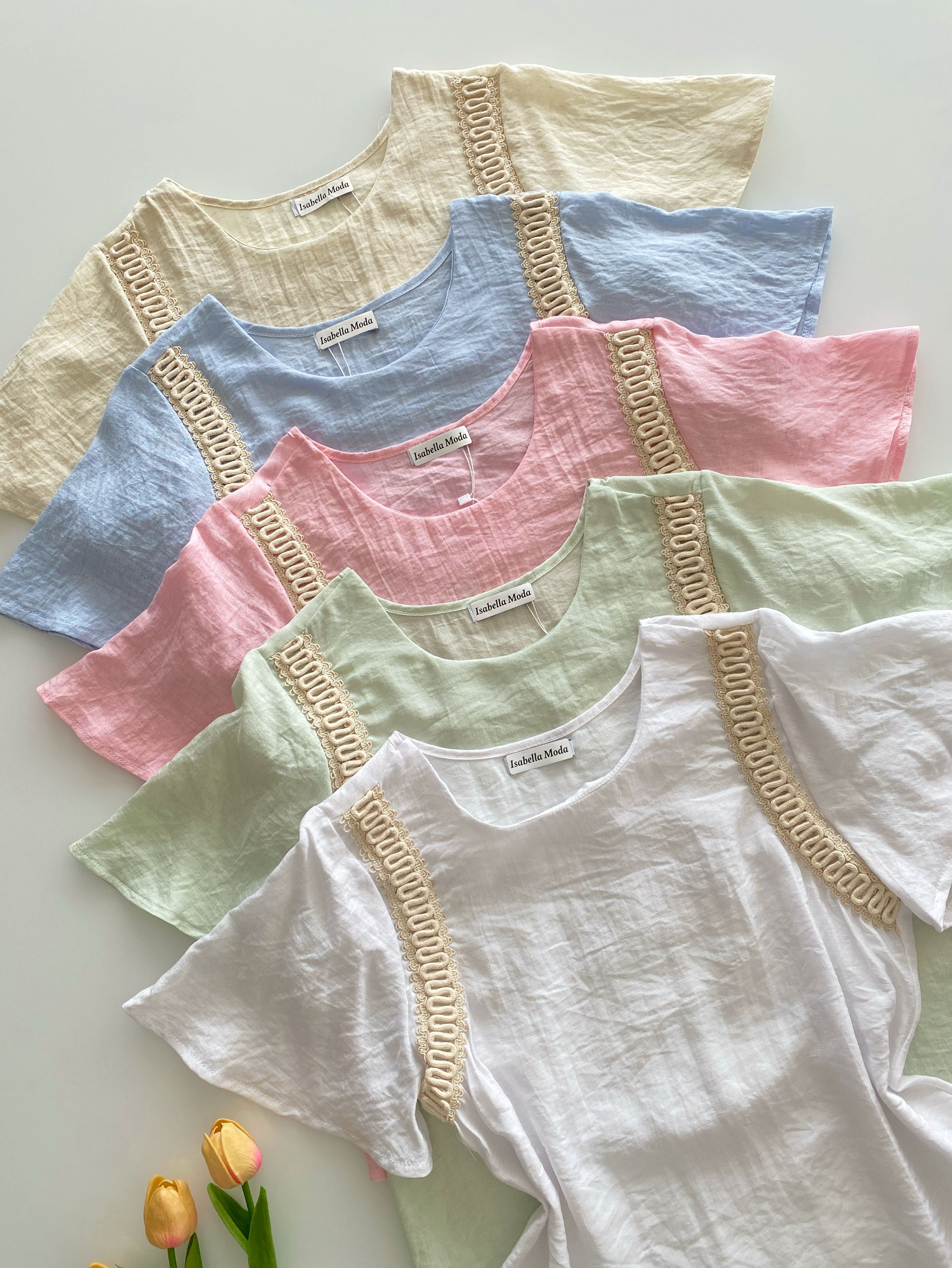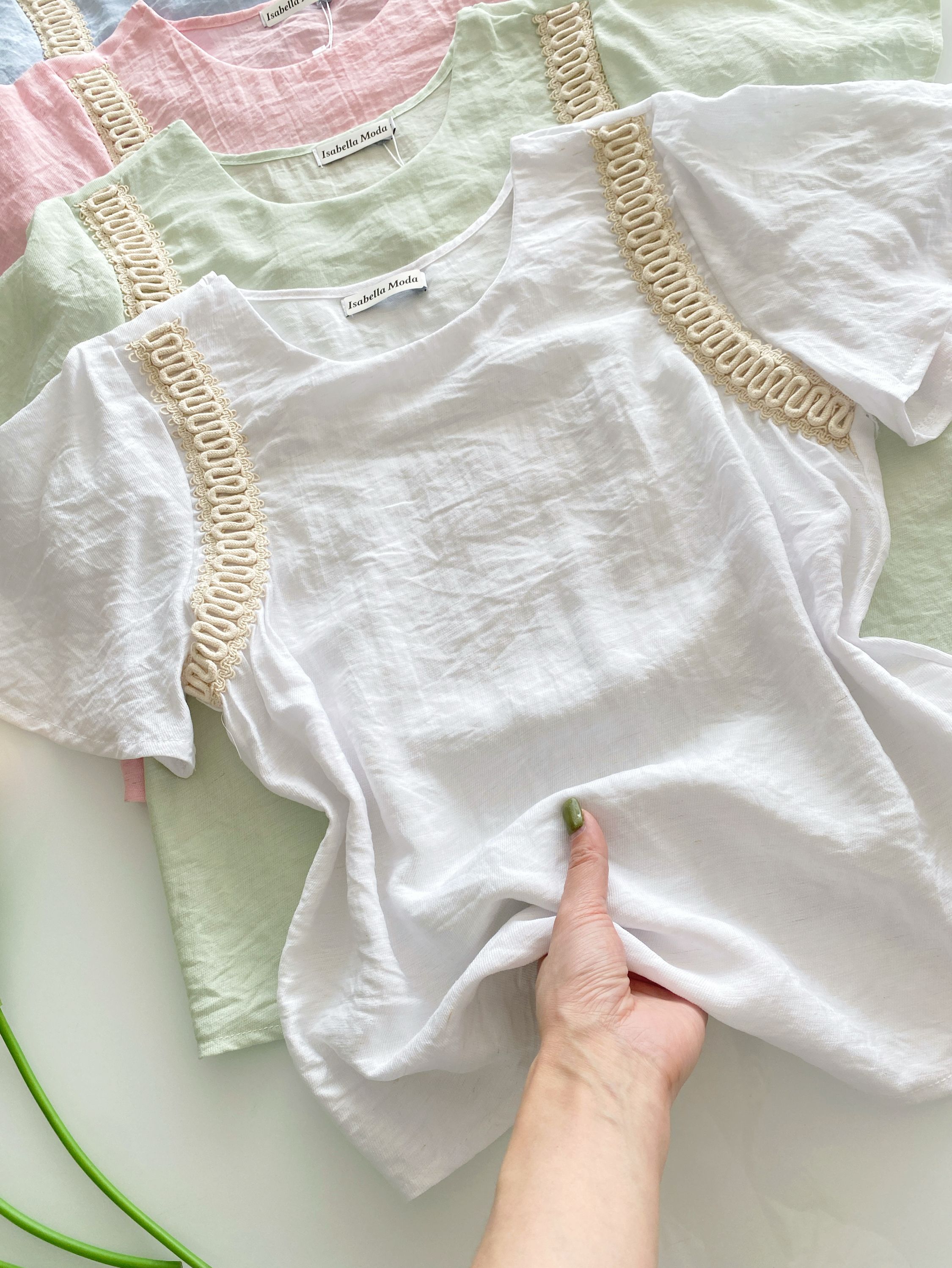 Blusa linho manga bordado Isabella moda