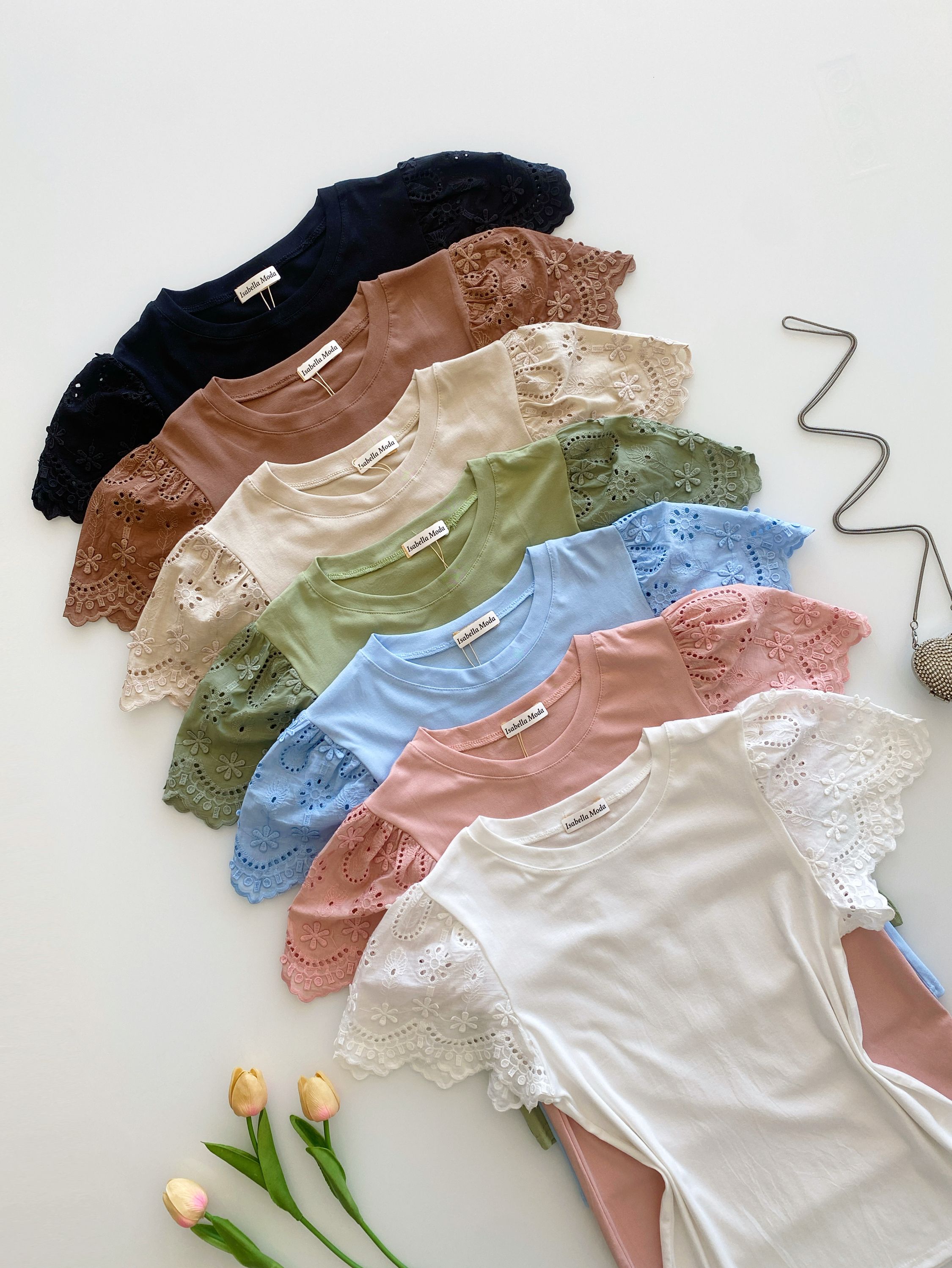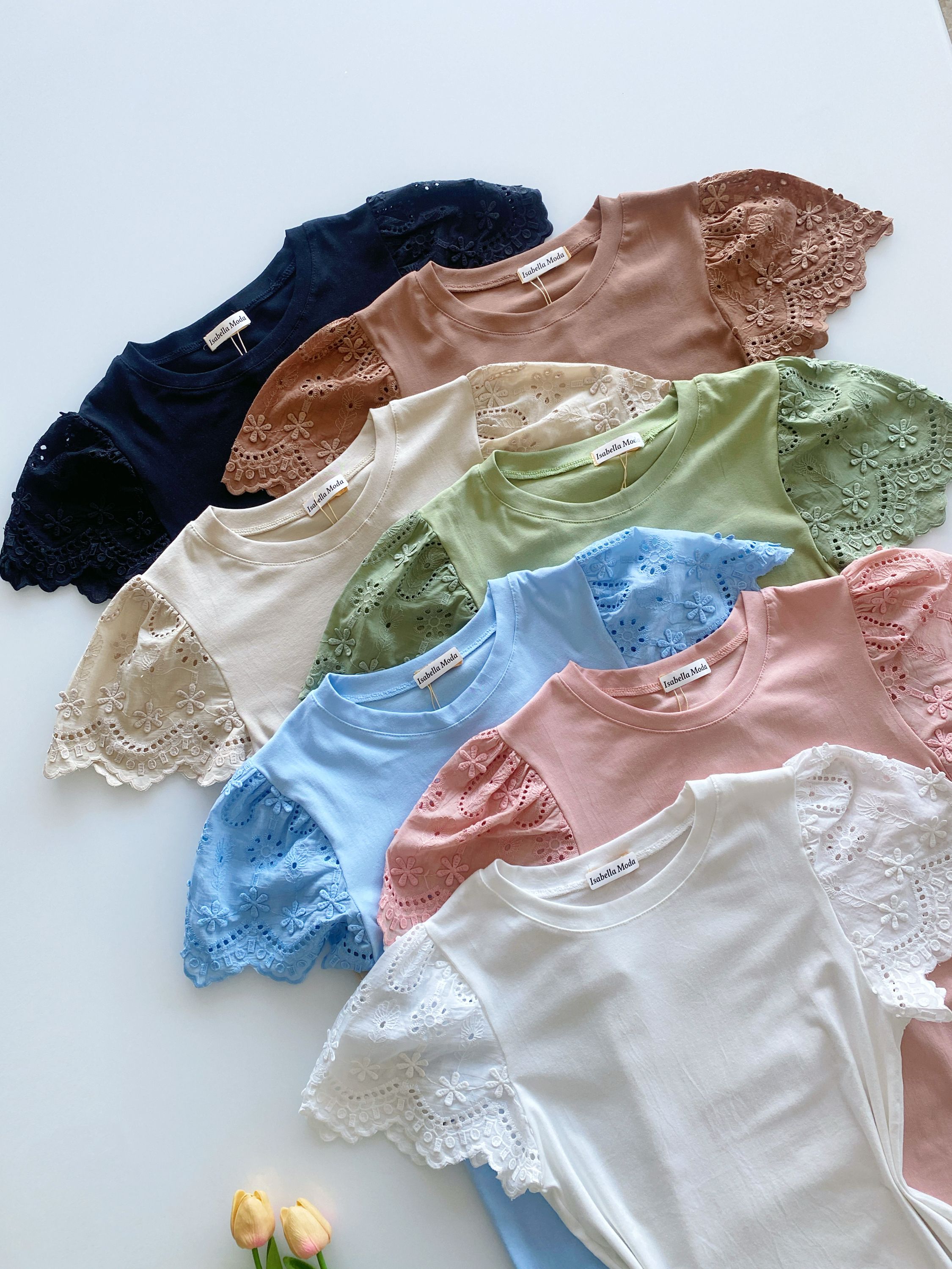 Blusa algodão manga com leise Isabella moda